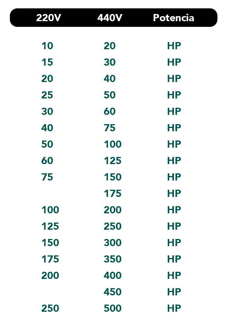 - Desde 0.25HP hasta 500HP en 440Vac.